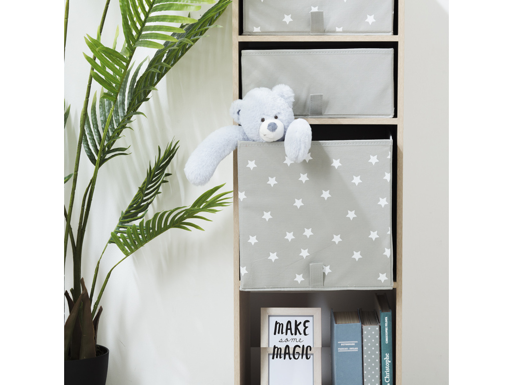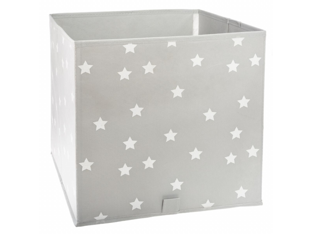 Stylový šedý box s hvězdičkami na hračky nebo jiné nezbytnosti je super praktický a zároveň designový prvek, který oživí pokojíček i ložnici.