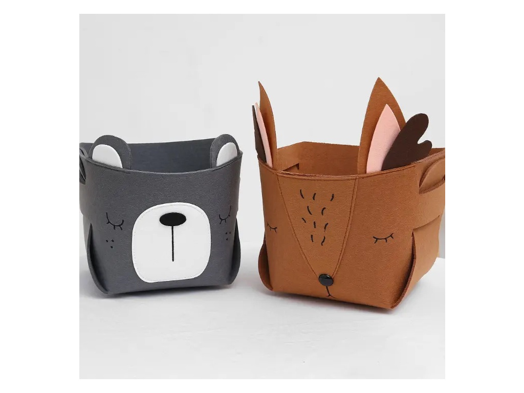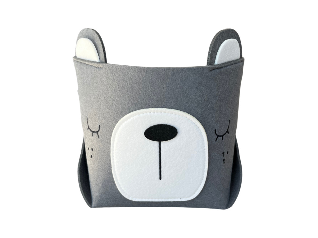 Plstěný košík ve tvaru medvídka je ideální pro uložení menších hraček nebo nezbytností, které potřebujete mít stále při ruce.