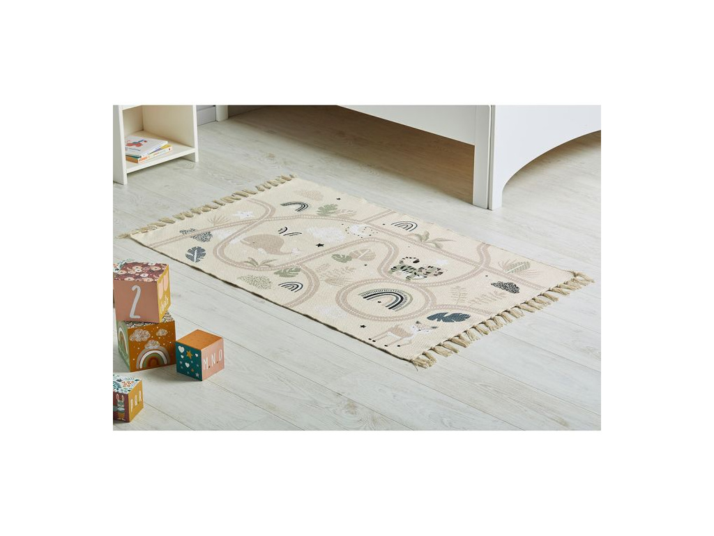 Dětský bavlněný koberec CESTA A ZVÍŘÁTKA 80 X 120 CM