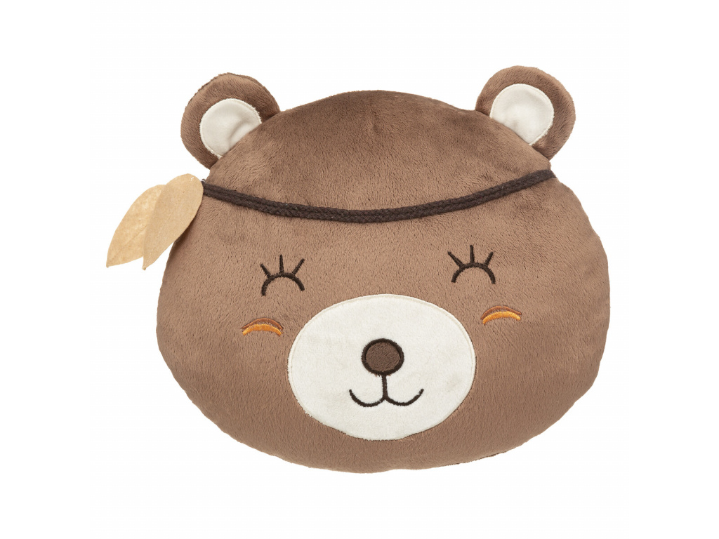 Hebký a na dotek příjemný polštářek ve tvaru medvídka s indiánskou čelenkou je krásným a praktickým doplňkem, který oživí dětský pokojíček.