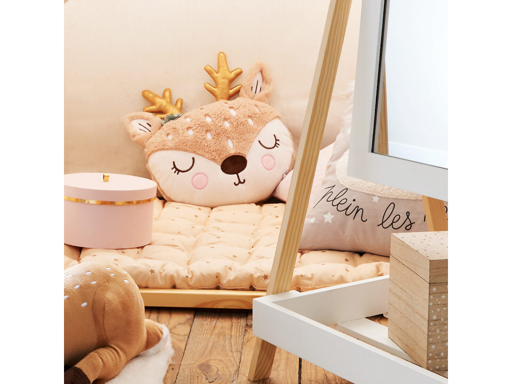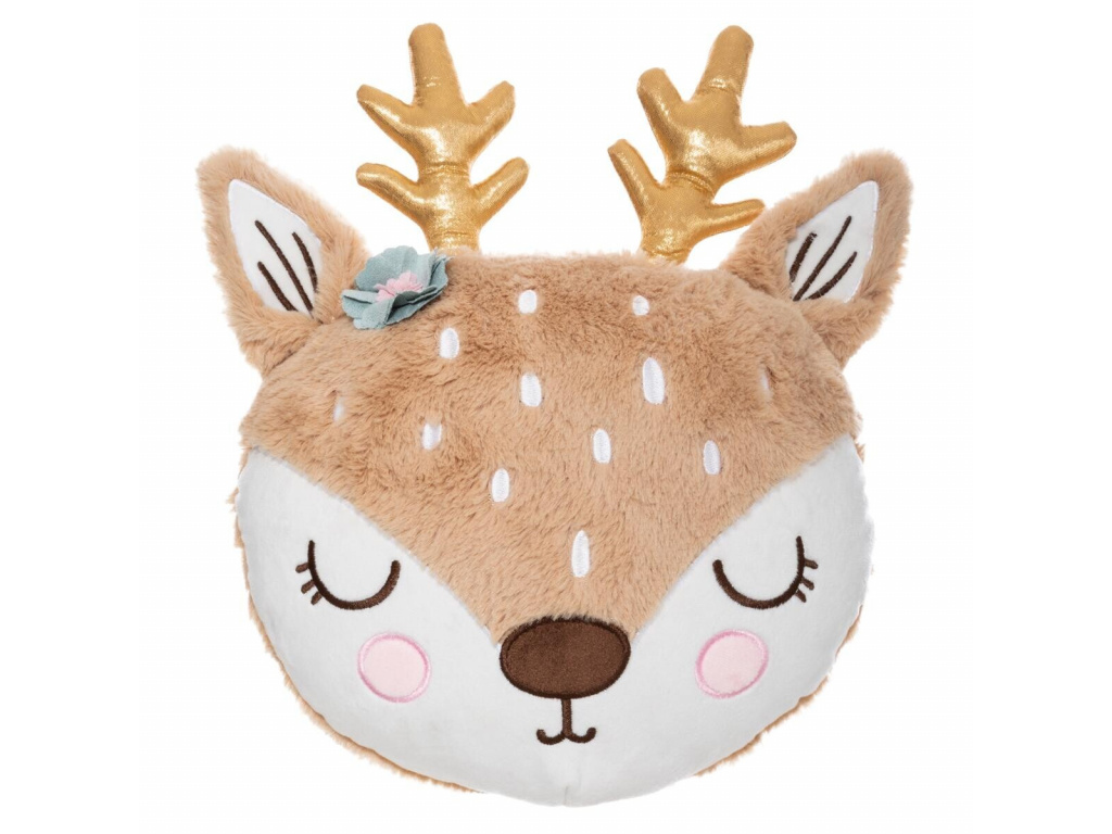 Hebký a na dotek příjemný polštářek ve tvaru jelínka s růžky je krásným a praktickým doplňkem, který oživí dětský pokojíček.