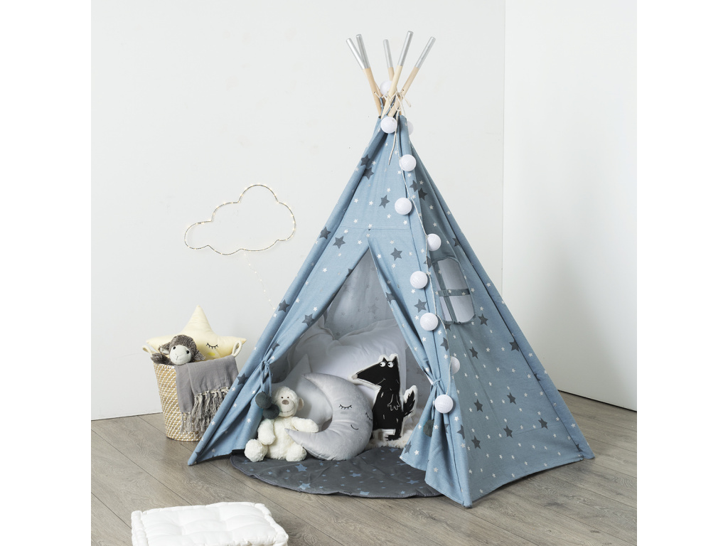 Dětský stan teepee MODRÉ HVĚZDIČKY