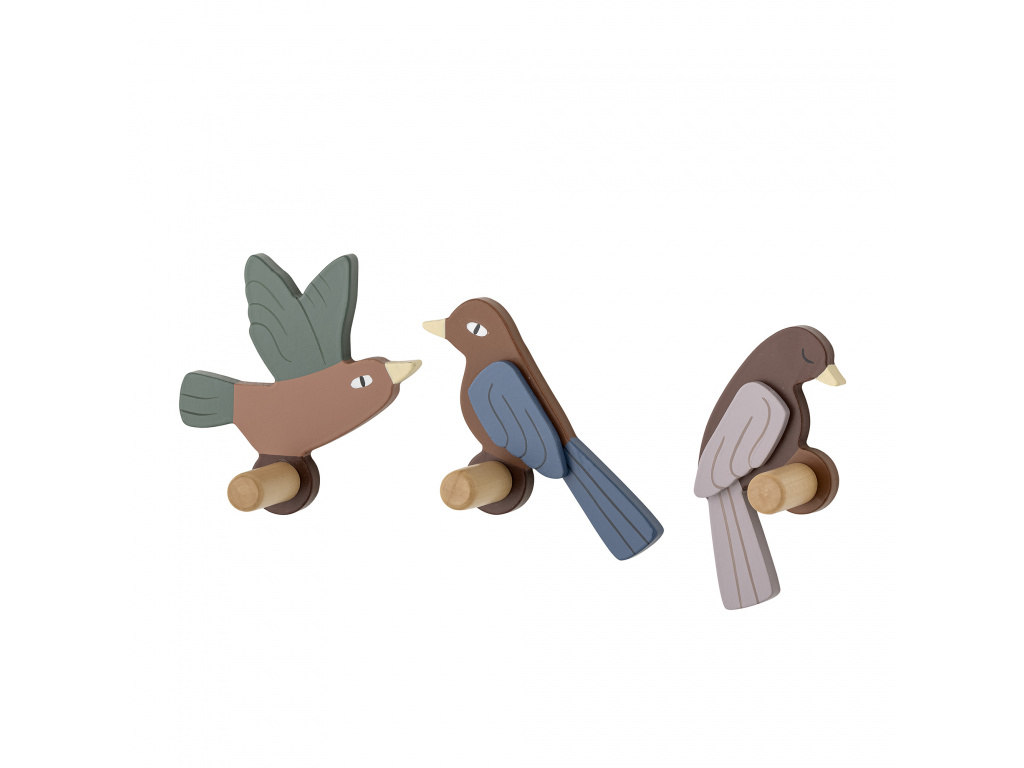 Sada 3 roztomilých háčků s různými ptáčky v tlumených barvách.