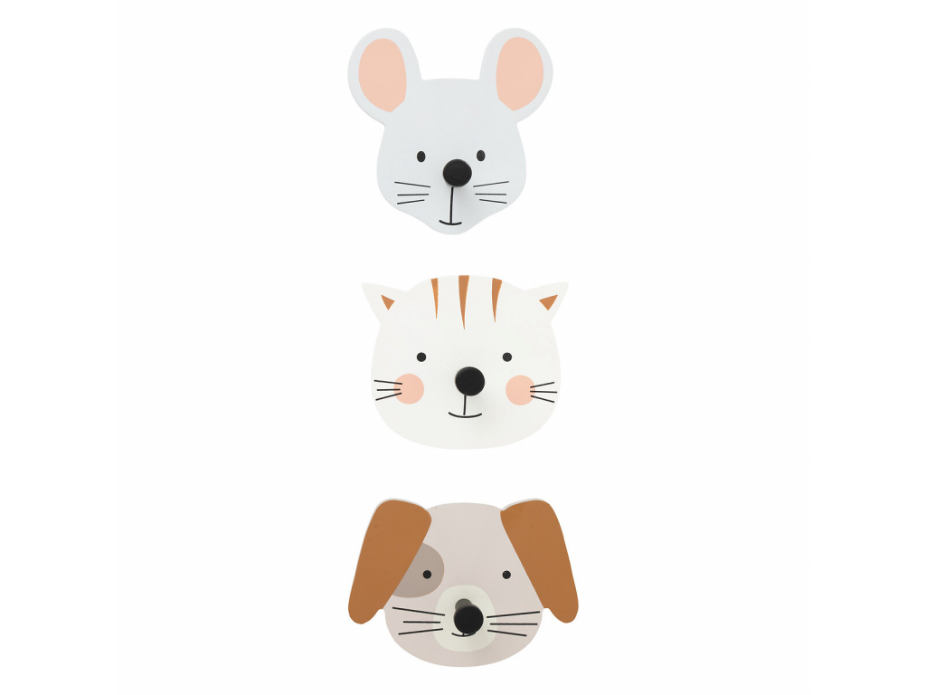 Kouzelná sada 3 věšáků ve tvaru zvířátek - myš, kočka a pejsek.