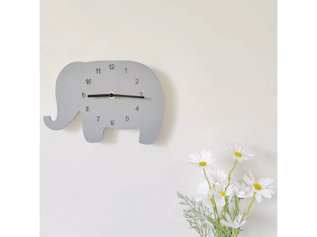 Dřevěné hodiny ve tvaru slona skvěle zapadnou do moderního, boho i přírodního stylu pokojíčku a hodí se pro holčičky i pro kluky.