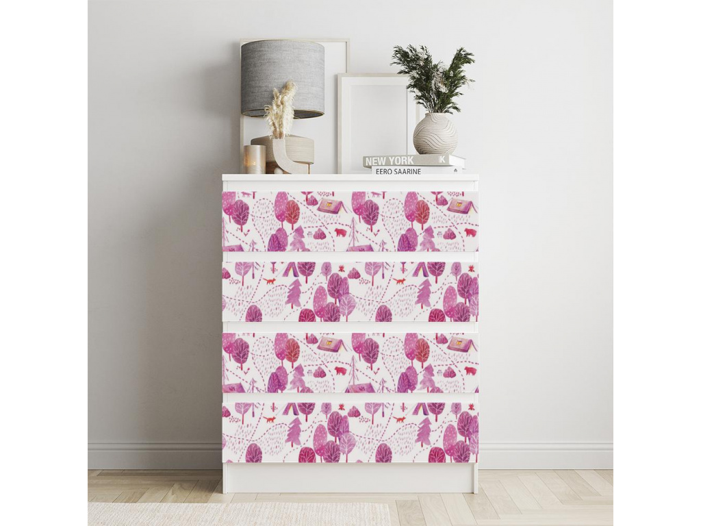 Samolepky na nábytek IKEA MALM - RŮŽOVÝ LESÍK
