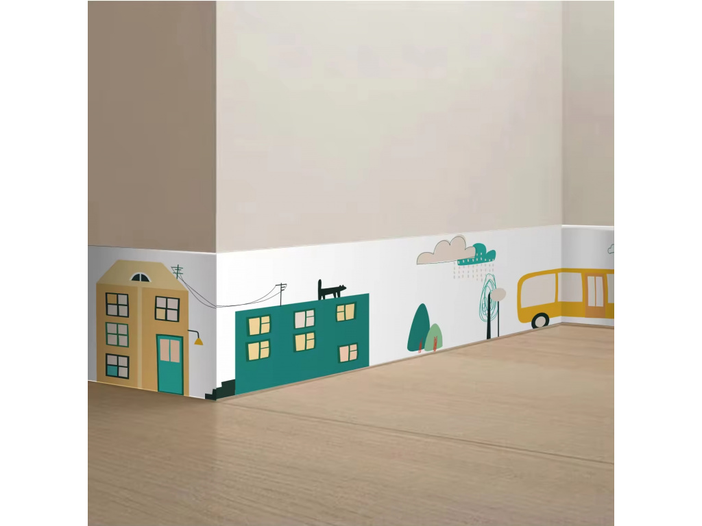 - Motiv: domečky, autobusy, stromečky