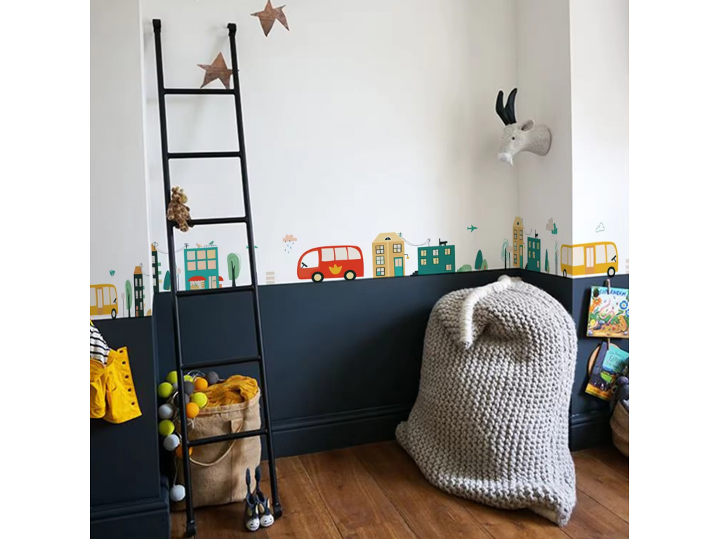 Samolepky na zeď DOMEČKY A AUTÍČKA