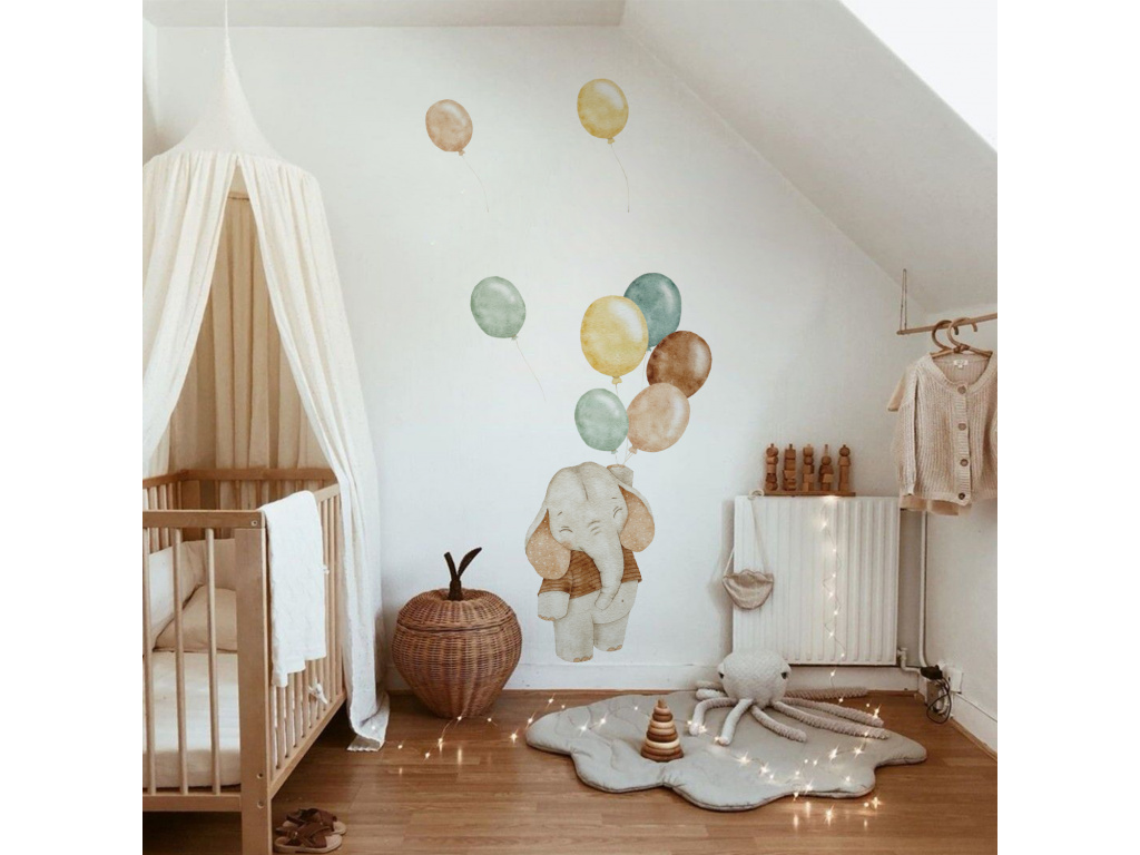 Samolepky na zeď LESNÍ ZVÍŘÁTKA S BALONKY A HVĚZDIČKAMI
