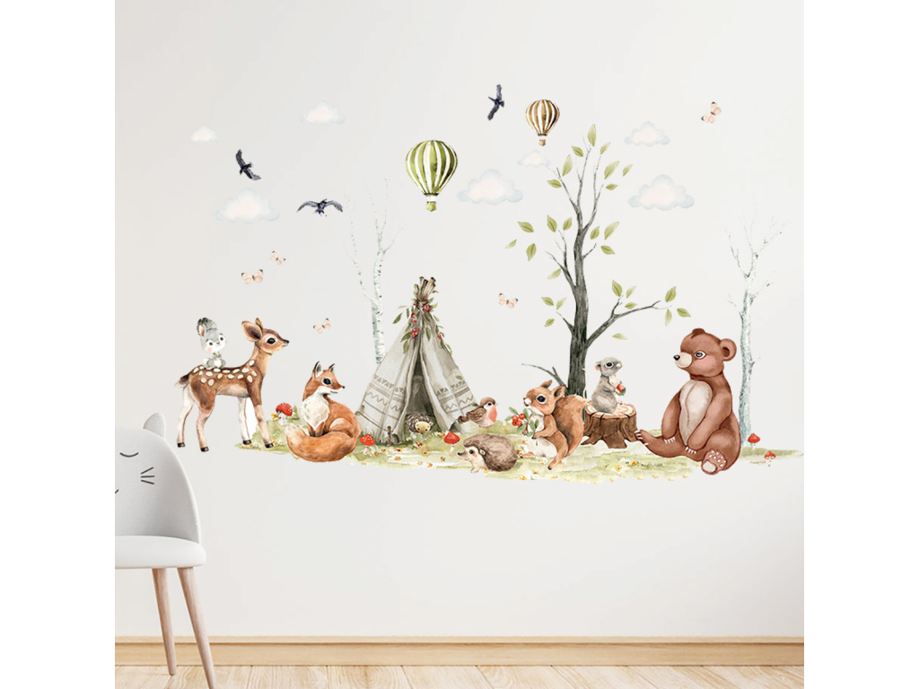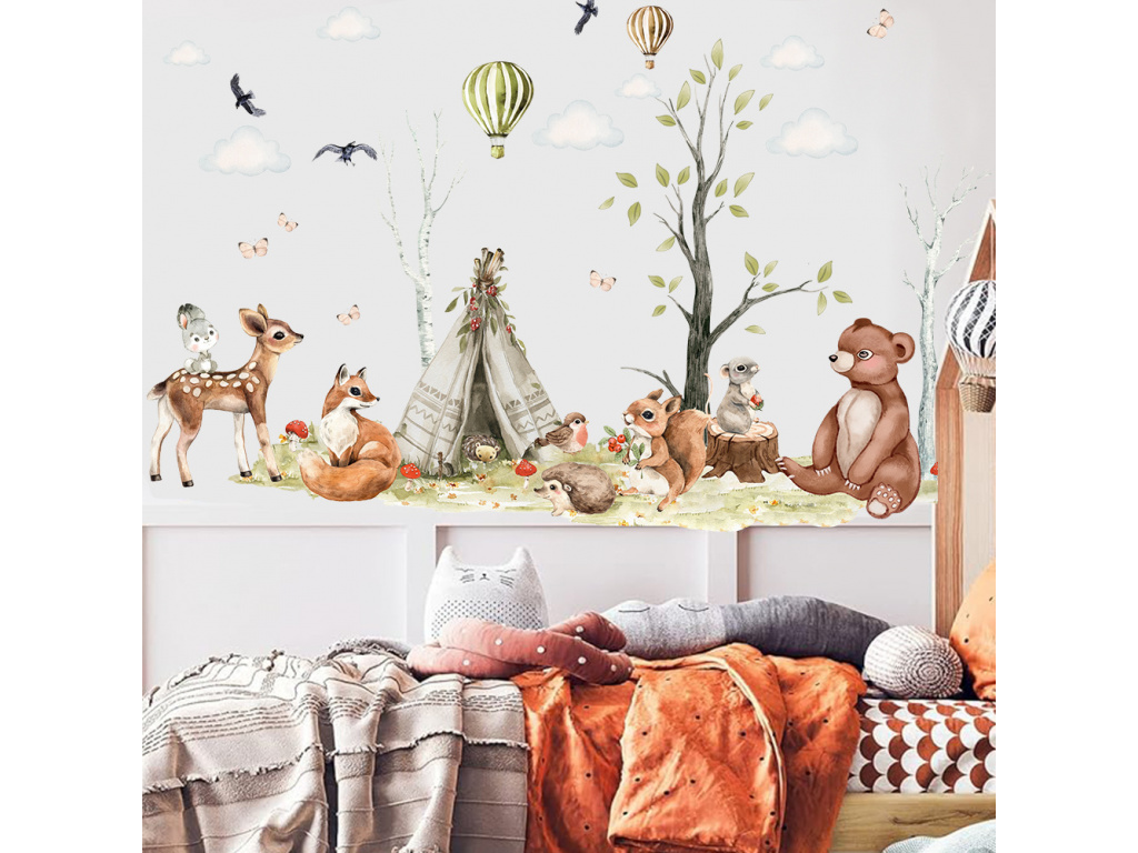 Samolepky na zeď ZVÍŘÁTKA A TEEPEE