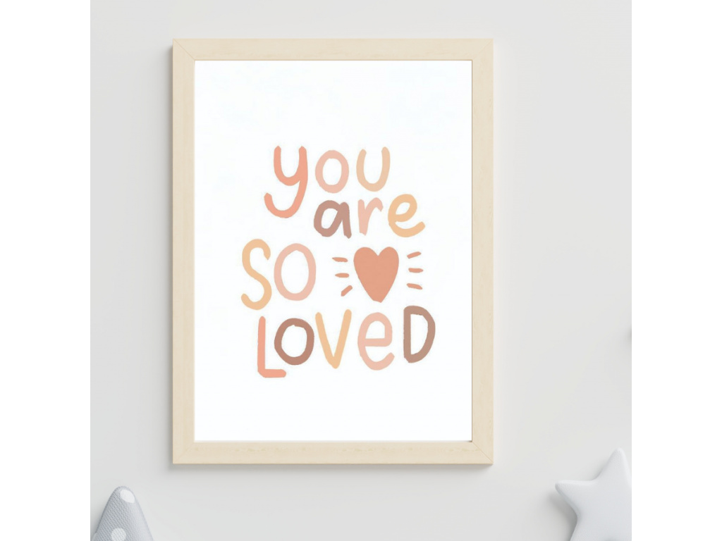 Rozkošný obrázek s nápisem YOU ARE SO LOVED se skvěle hodí do dětského pokoje, obývacího pokoje či ložnice.